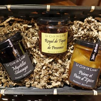 Poire pain d'épices, Fraise, Fraise des bois, Royale de figues de Provence, Confit de Roses de Grasse...